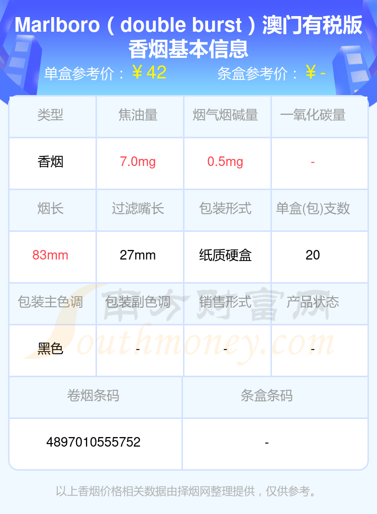 1、Marlboro(double burst)澳門有稅版
