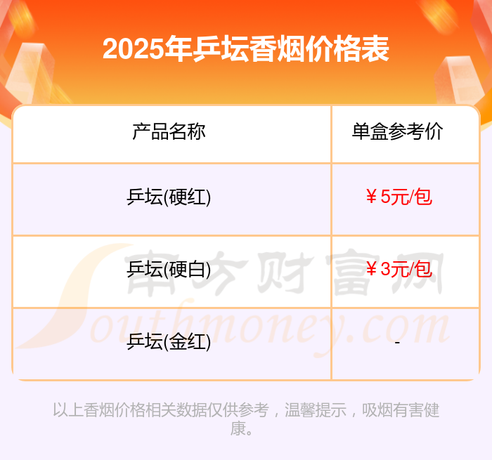 乒壇(硬紅)參考價5.0元/包、乒壇(硬白)參考價3.0元/包。