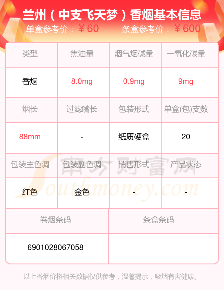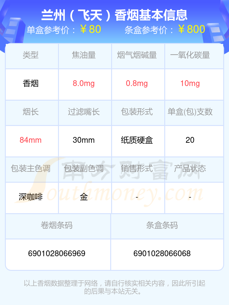 蘭州(青藏2號(hào))參考價(jià)80.0元/包、蘭州(飛天)參考價(jià)80.0元/包、蘭州(中支飛天夢(mèng))參考價(jià)60.0元/包、蘭州(飛天夢(mèng))參考價(jià)100.0元/包、蘭州(青藏1號(hào))參考價(jià)100元/包等。