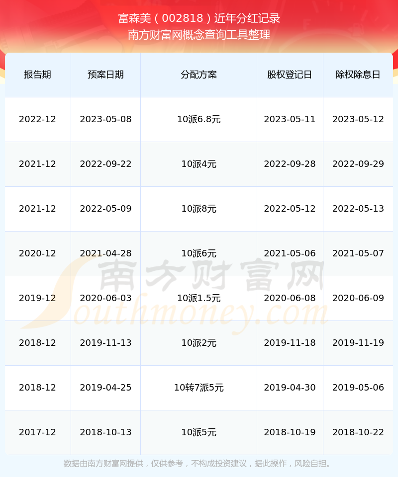 近年富森美分紅派息情況如下表所示: