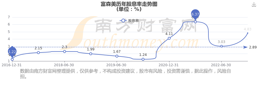 富森美歷年股息率走勢如下圖:
