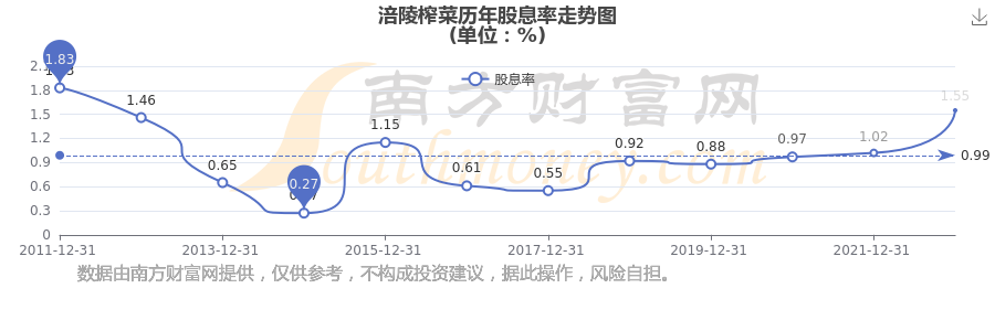 涪陵榨菜歷年股息率走勢如下圖: