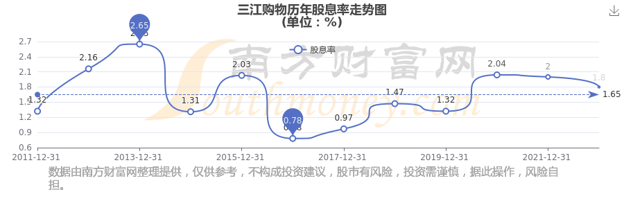 按照南方財富網(wǎng)趨勢選股系統(tǒng)統(tǒng)計,三江購物所屬行業(yè)為食品行業(yè),食品行業(yè)分紅排名情況如下表: