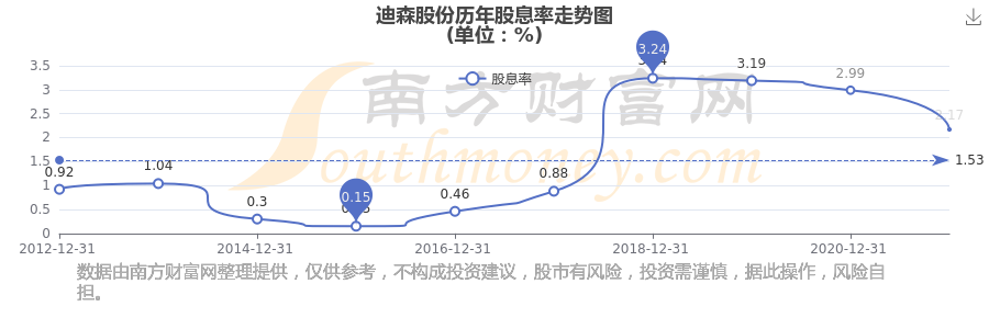 迪森股份最新一次公布的分紅方案:10派1.2元。