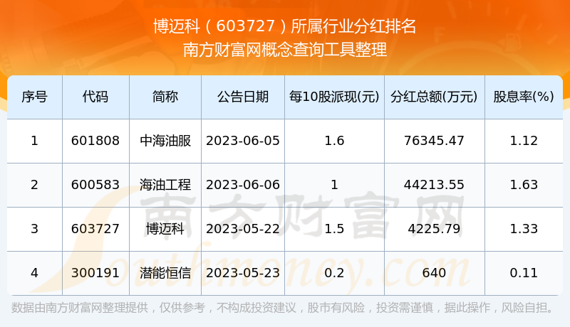 博邁科最新一次公布的分紅方案:10派1.5元。