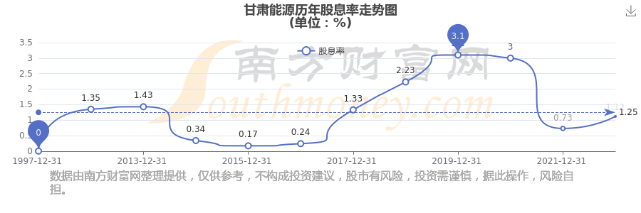 近年甘肅能源年度股息率走勢(shì)如下圖: