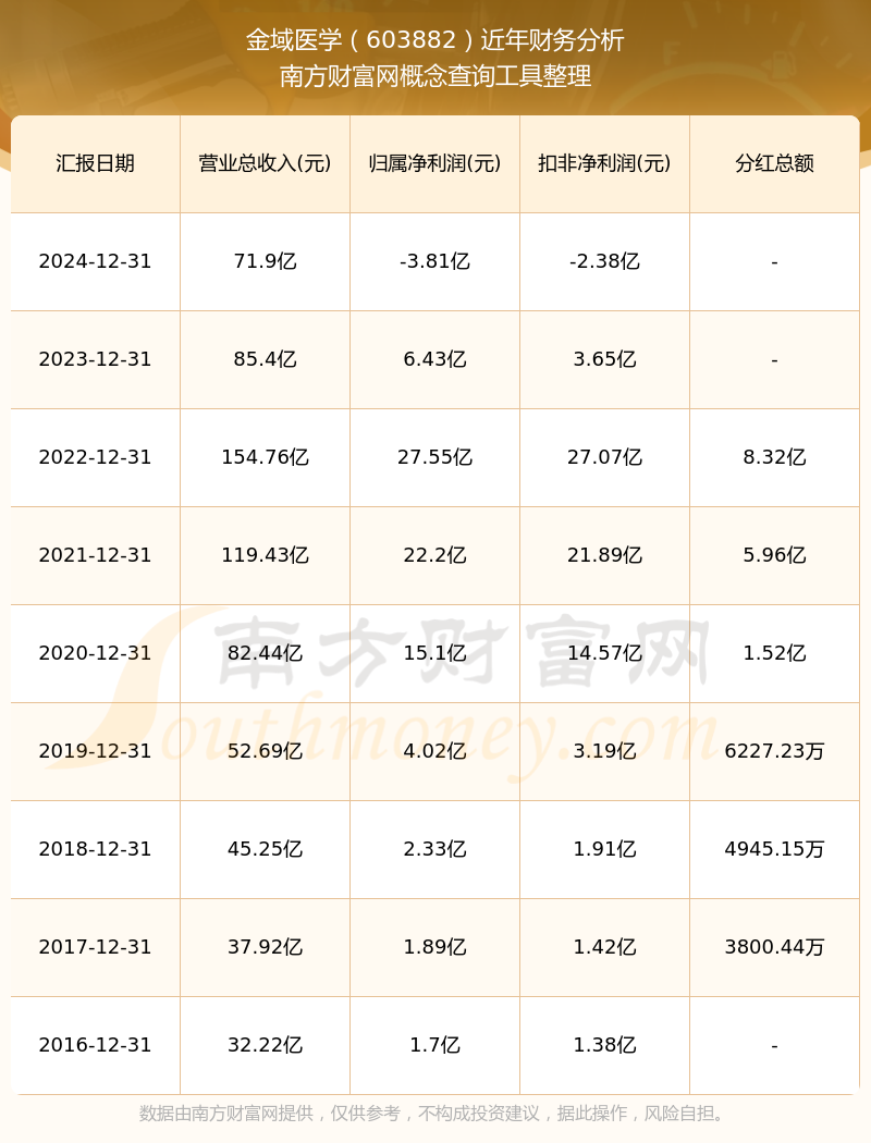 金域醫(yī)學(xué)2024年總營收71.9億,同比增長-15.81%;凈利潤-3.81億,同比增長-159.26%;銷售毛利率33.15%。