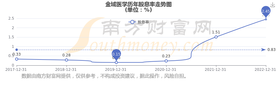 金域醫(yī)學(xué)歷年股息率走勢如下圖:
