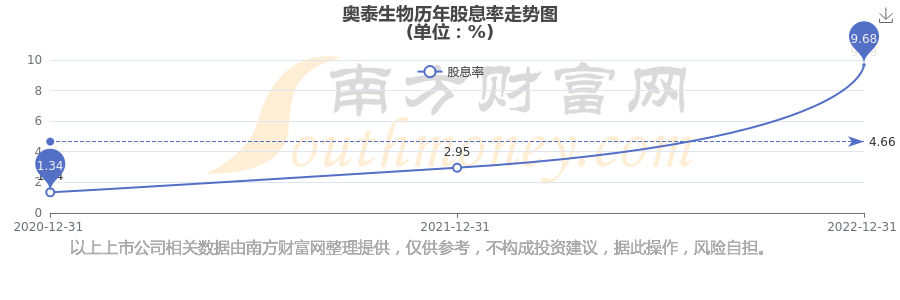奧泰生物歷年股息率走勢如下圖:
