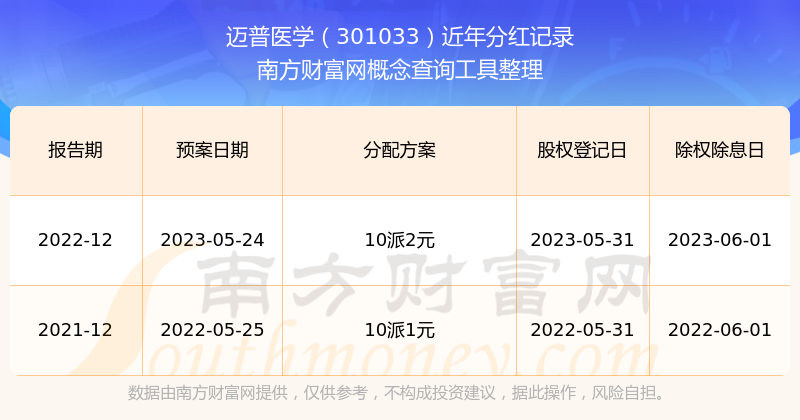 一、邁普醫(yī)學(xué)(301033)股票分紅記錄