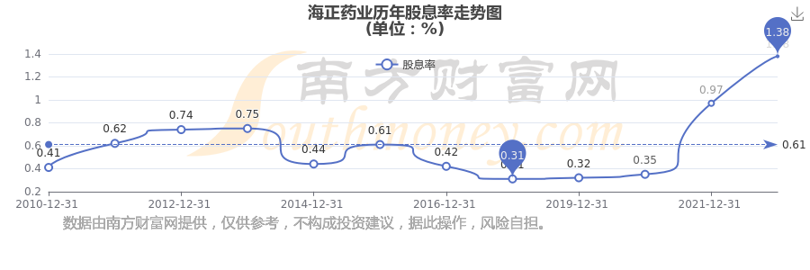 近年海正藥業(yè)年度股息率走勢如下圖: