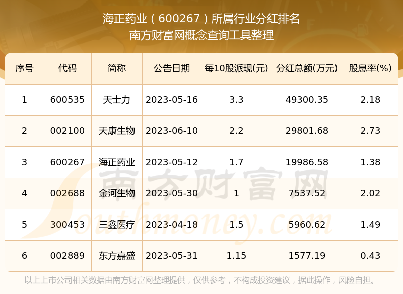 二、海正藥業(yè)600267行業(yè)分紅排名
