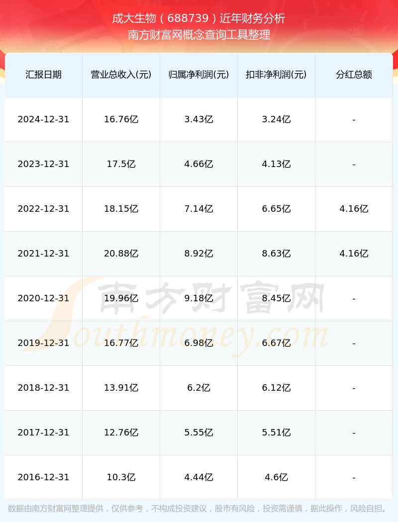 成大生物公司2024年實現(xiàn)營收16.76億元,凈利潤3.43億元,毛利率82.94%。