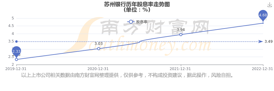 蘇州銀行歷年股息率走勢(shì)如下圖: