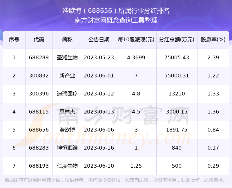 二、浩歐博688656行業(yè)分紅排名