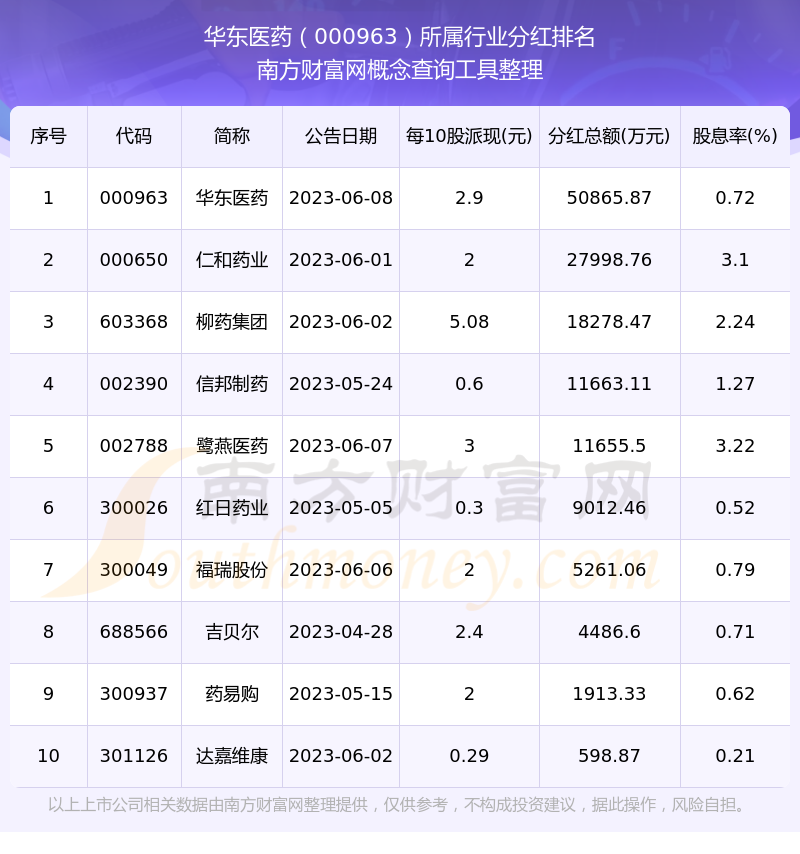 二、華東醫(yī)藥000963行業(yè)分紅排名