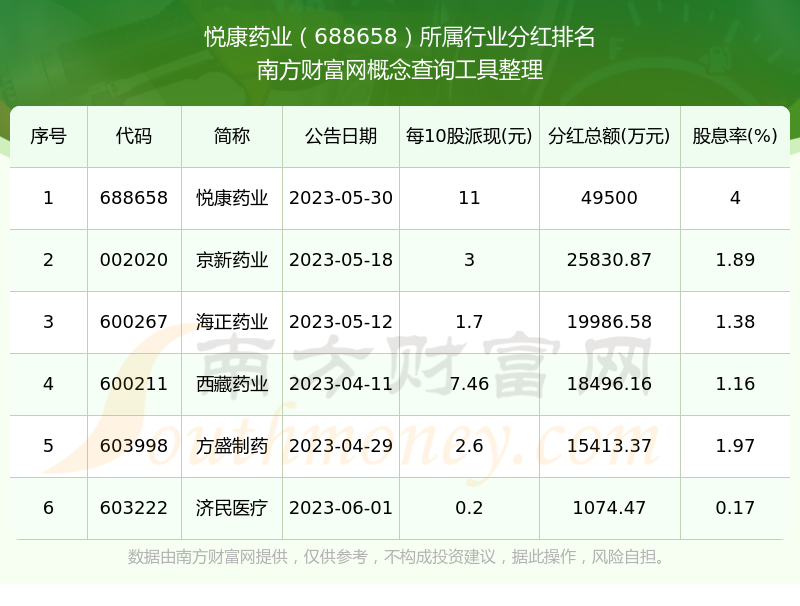 二、悅康藥業(yè)688658行業(yè)分紅排名