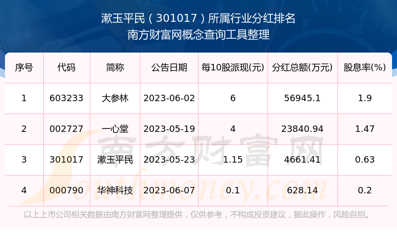 按照南方財(cái)富網(wǎng)趨勢(shì)選股系統(tǒng)統(tǒng)計(jì),漱玉平民所屬行業(yè)為中西成藥行業(yè),中西成藥行業(yè)分紅排名情況如下表: