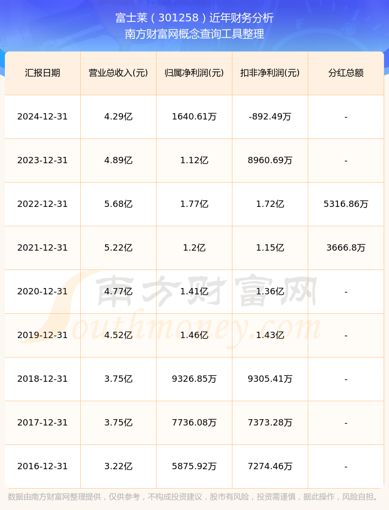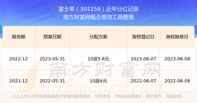 近年富士萊分紅派息情況如下表所示: