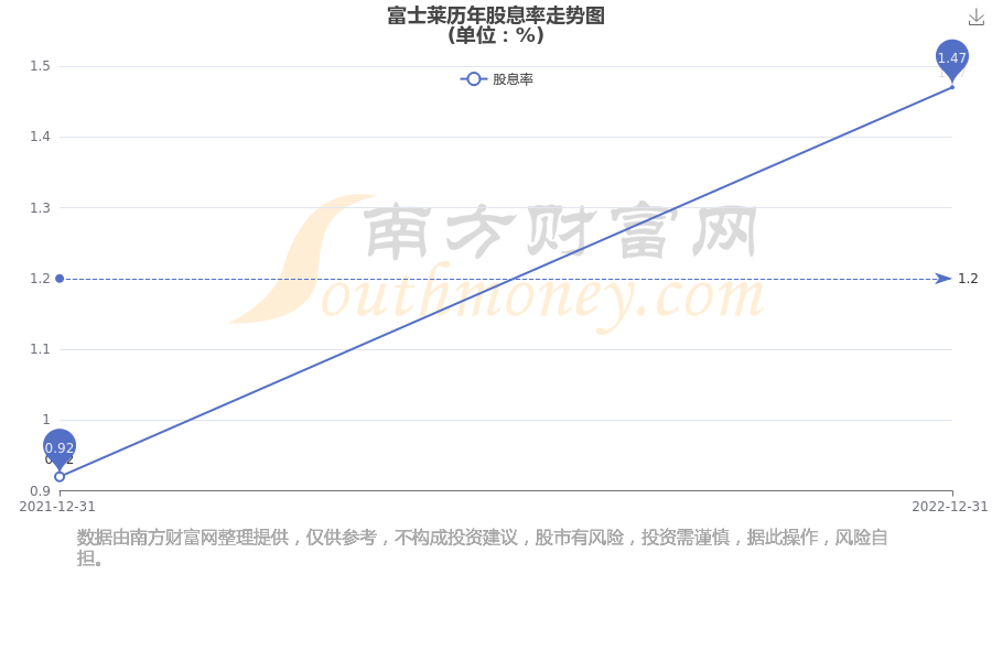富士萊歷年股息率走勢(shì)如下圖: