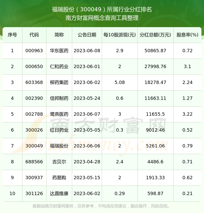 福瑞股份最新一次公布的分紅方案:10派2元。