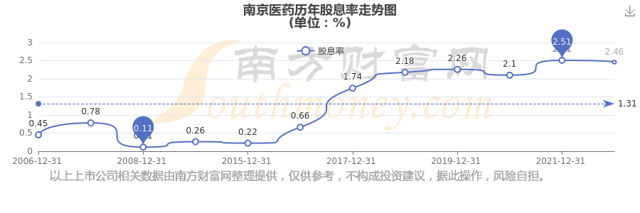 近年南京醫(yī)藥年度股息率走勢如下圖: