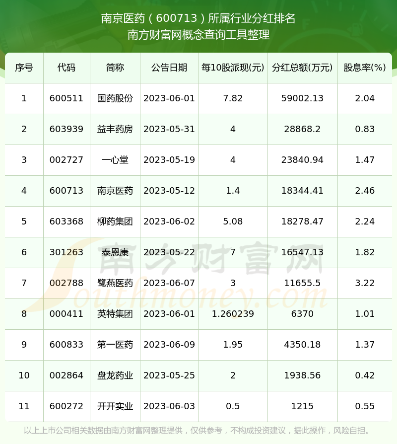二、南京醫(yī)藥600713行業(yè)分紅排名