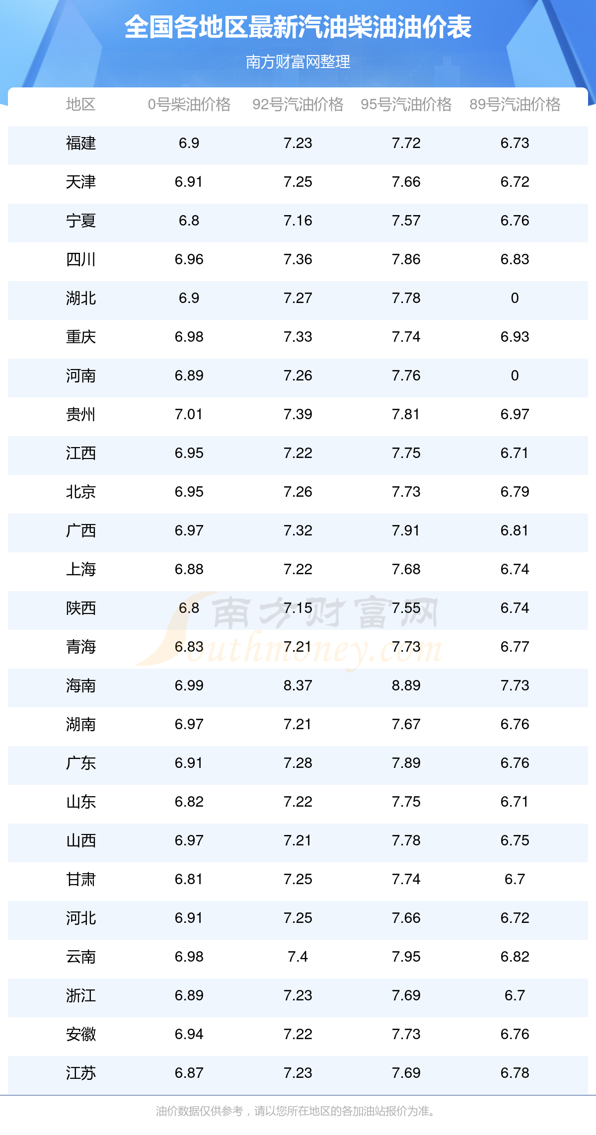 2025年8月17日全國油價調(diào)整及最新汽油價格表