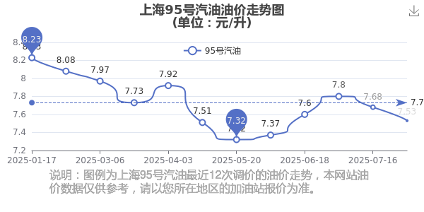 上海2025年汽油價格調整走勢圖
