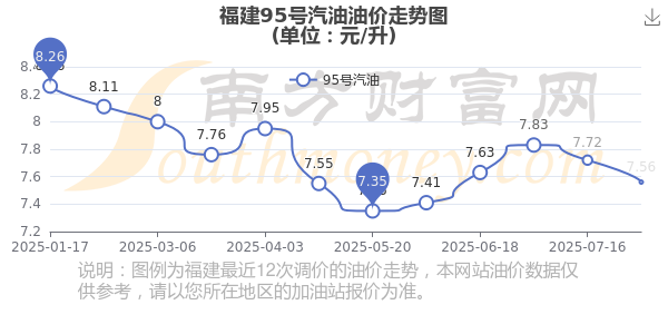 10月12日,福建95號(hào)汽油的價(jià)格是7.56元每升,本次的調(diào)整時(shí)間為8月27日,對(duì)比上次的調(diào)整減了0.16元,減2.073%,10月13日24時(shí)為下一輪油價(jià)調(diào)整時(shí)間,還有1.95天。