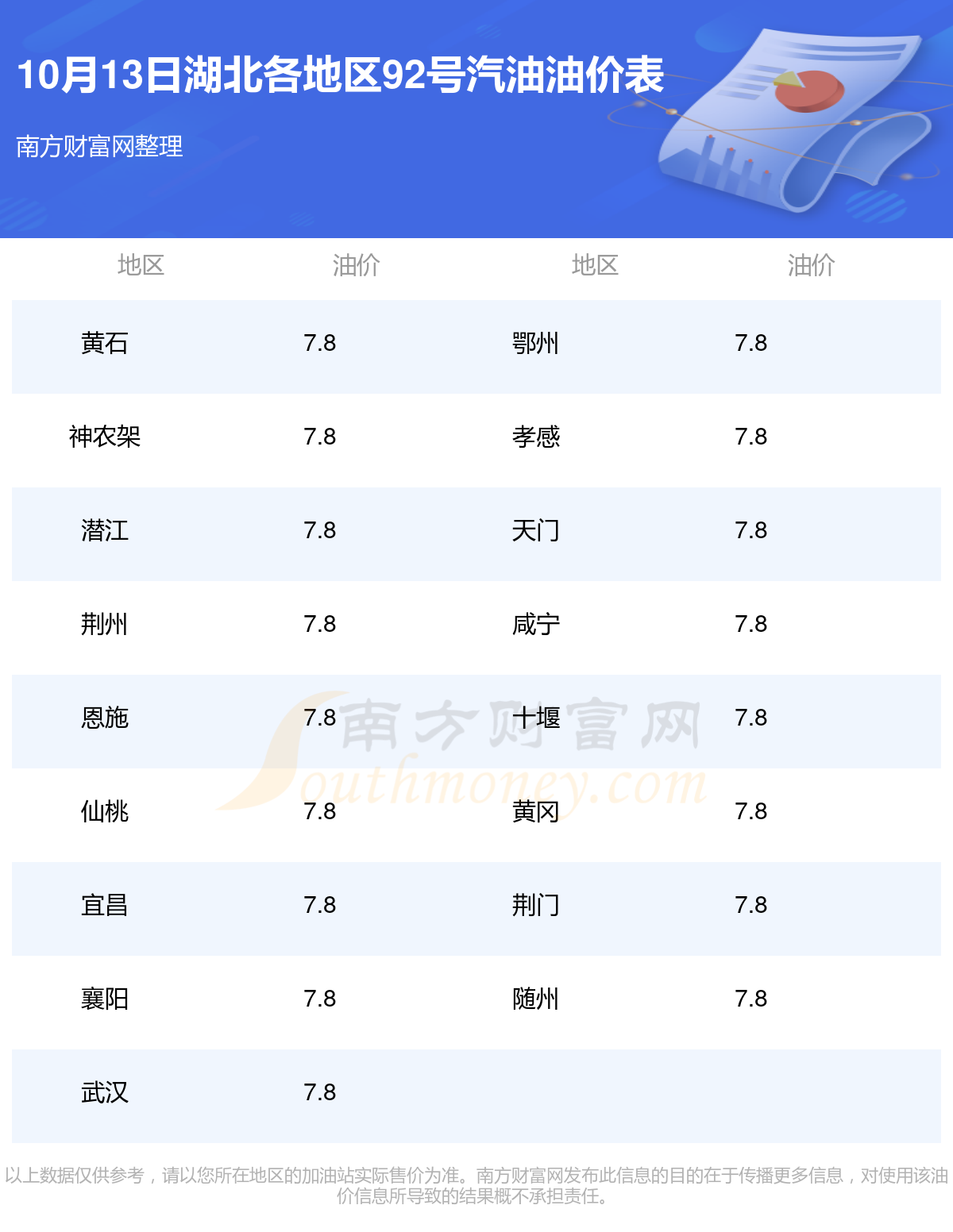 2025年10月13日湖北92號(hào)汽油最新價(jià)格一覽表