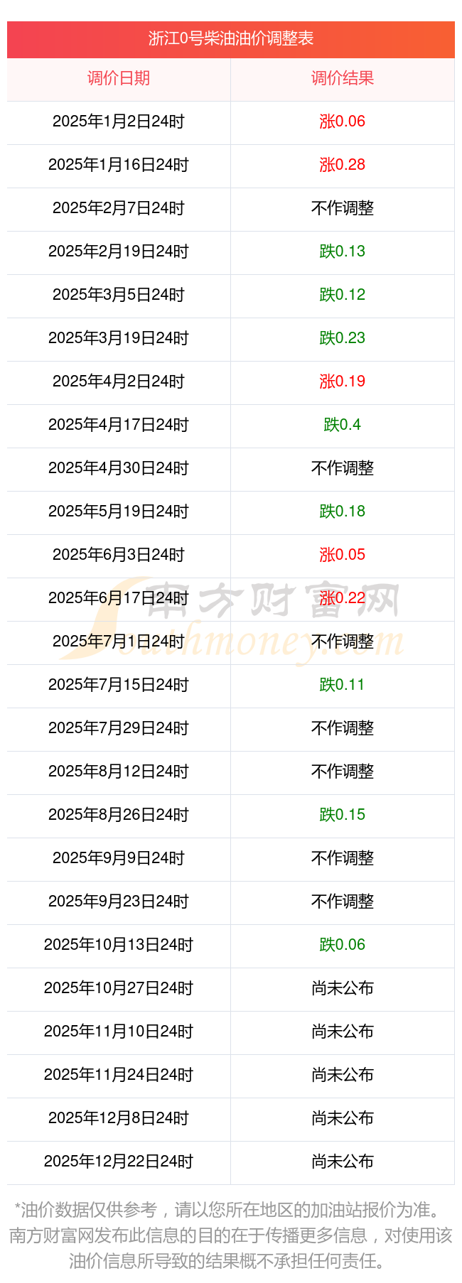 - 今日汽油價(jià)格浙江0號(hào)柴油油價(jià)查詢(2025-10-