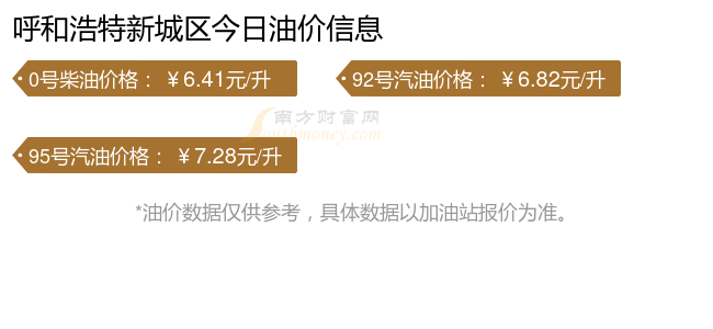 油價調(diào)整最新消息:呼和浩特新城區(qū)汽油、柴油11月30日每升的價格為(本輪油價調(diào)整時間為11月25日):92號汽油6.82元;95號汽油7.28元;0號柴油6.41元。下一輪油價調(diào)整時間12月8日24時。