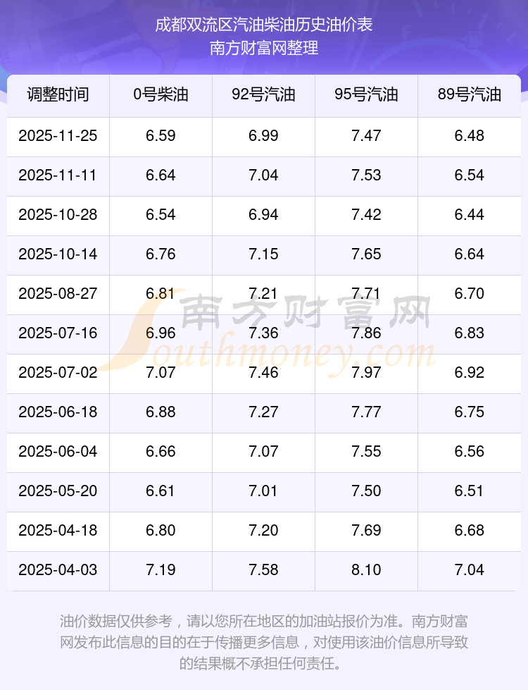 以上油價信息是當前市場上最新油價信息,油價數據僅供參考,實際在售油價可能有小幅偏差,請以您所在地區(qū)的加油站實際售價為準。