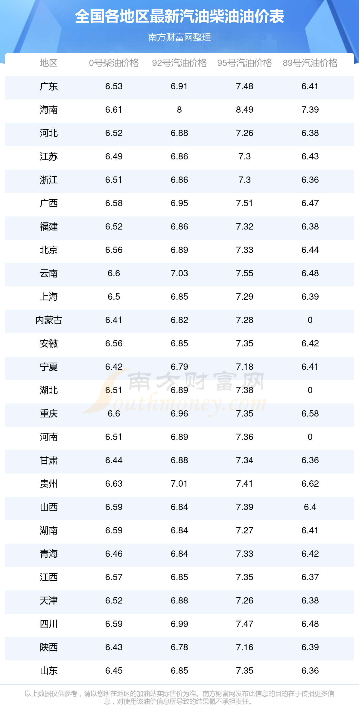 油價調(diào)整最新消息:四川綿陽江油市汽油、柴油11月30日每升的價格(油價調(diào)整時間11月25日):92號汽油6.99元;95號汽油7.47元;89號汽油6.48元;0號柴油6.59元。下一輪油價調(diào)整時間12月8日24時。