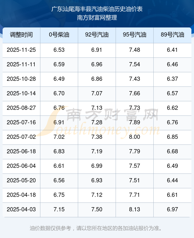 廣東汕尾海豐縣歷史油價表
