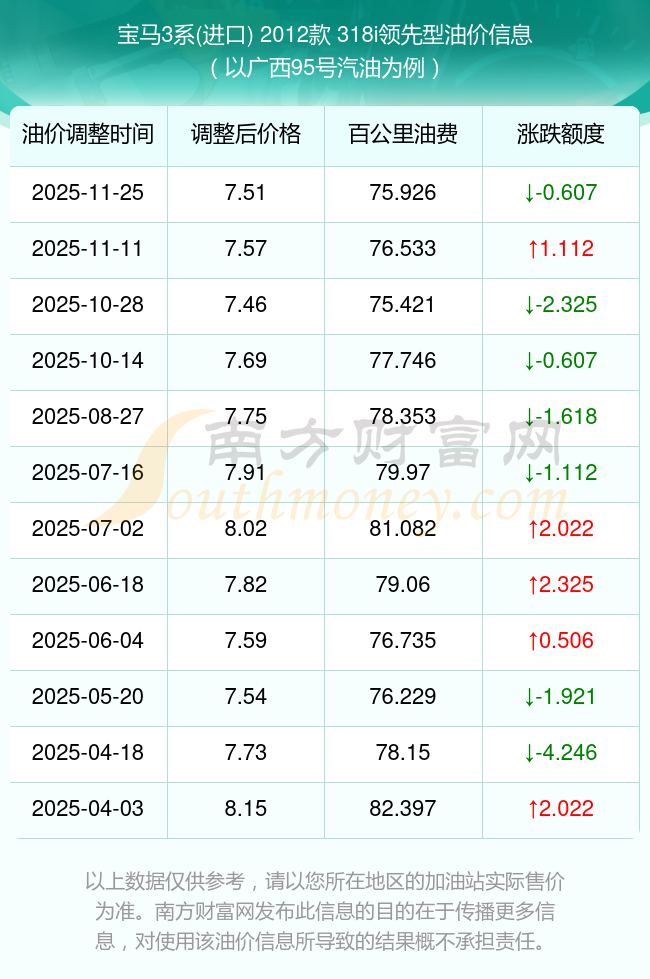 根據(jù)11月25日95號(hào)汽油最新調(diào)整價(jià)格7.51元/升來計(jì)算(以廣西為例),該車型每百公里的平均油費(fèi)是75.926元,上一輪11月11日調(diào)整價(jià)格7.57元每升來計(jì)算,每百公里的平均油費(fèi)是76.533元,對(duì)比上一輪少花0.607元,下一輪的油價(jià)調(diào)整時(shí)間是12月8日24時(shí)。