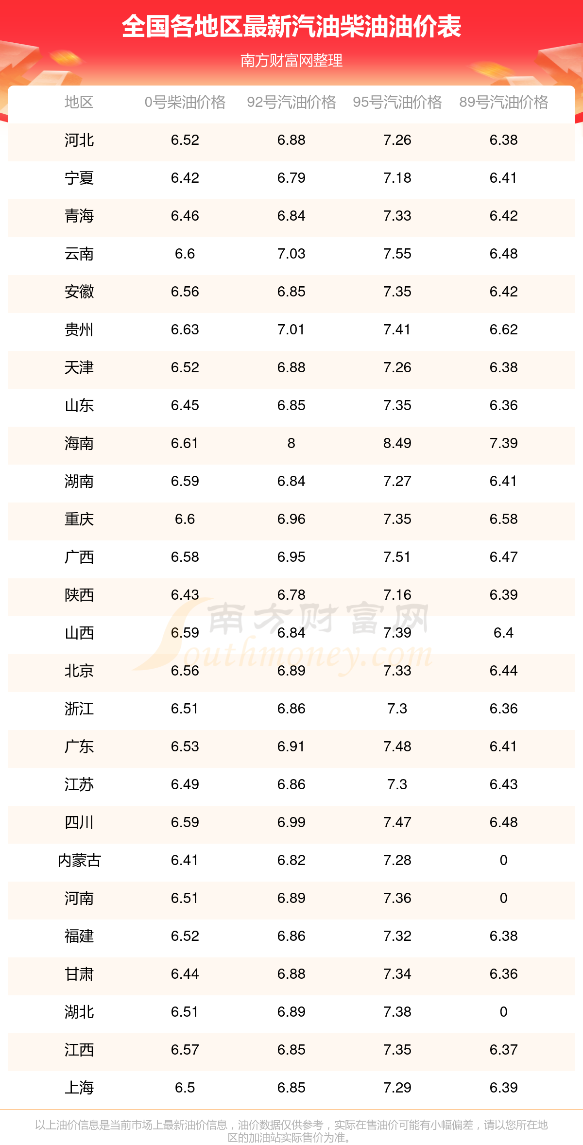 油價數(shù)據(jù)僅供參考,請以您所在地區(qū)的各加油站報價為準(zhǔn)。