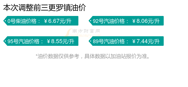 油價數(shù)據(jù)僅供參考,請以您所在地區(qū)的加油站報價為準。南方財富網(wǎng)發(fā)布此信息的目的在于傳播更多信息,對使用該油價信息所導致的結(jié)果概不承擔任何責任。