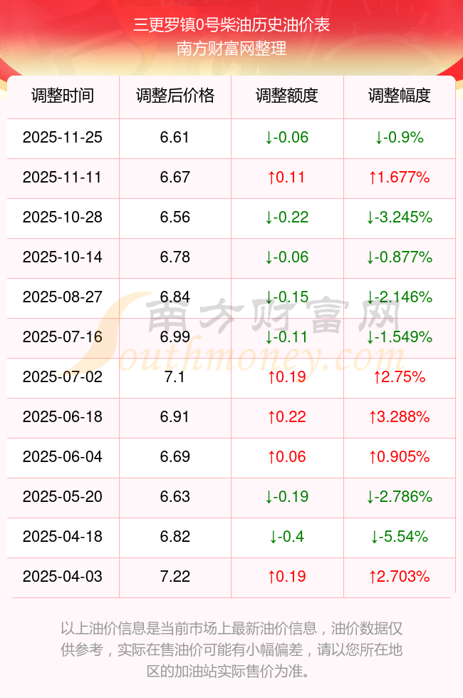 11月30日三更羅鎮(zhèn)0號柴油歷史油價一覽表