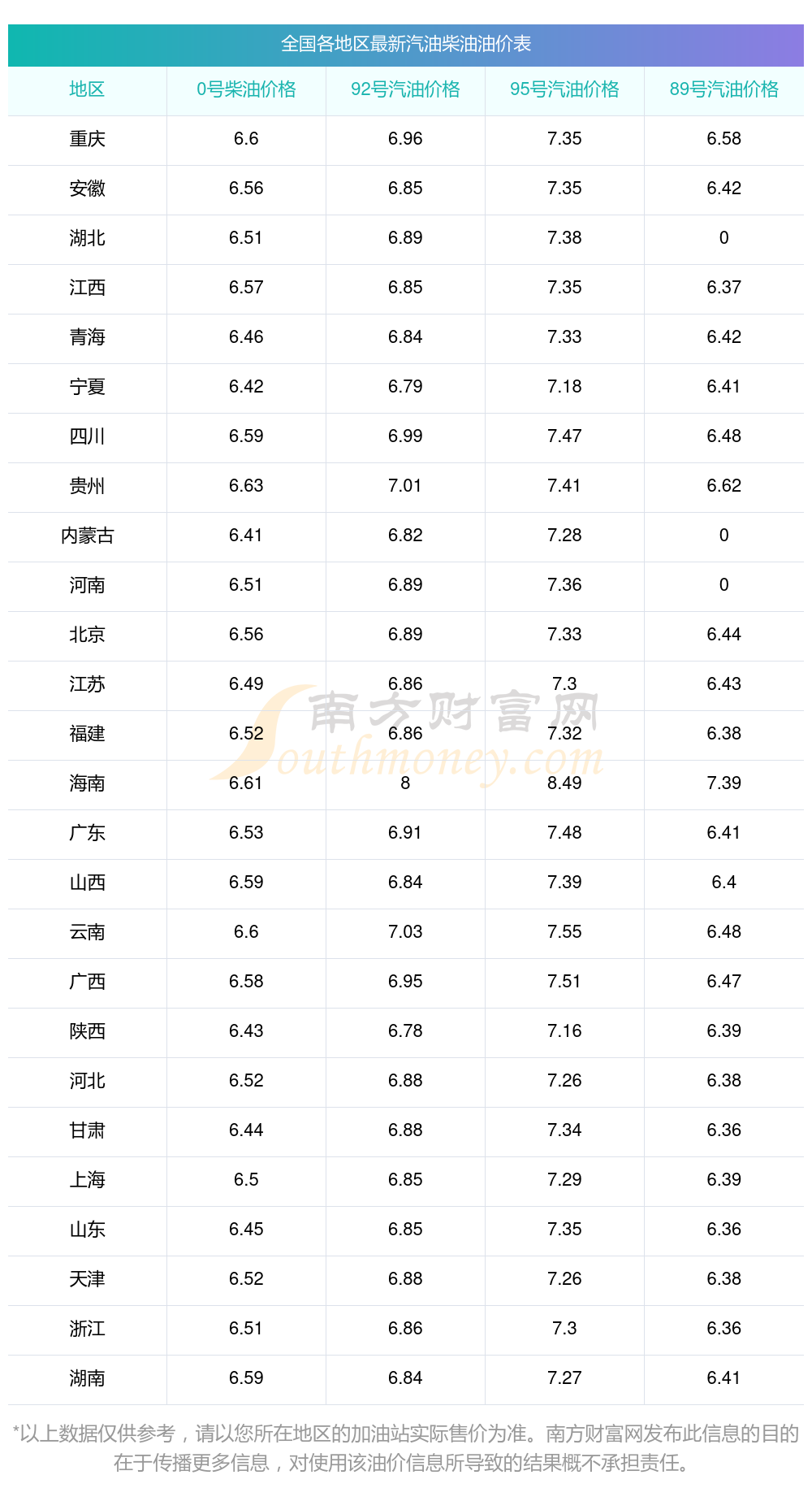 2025年11月30日全國(guó)各地汽油價(jià)格一覽表