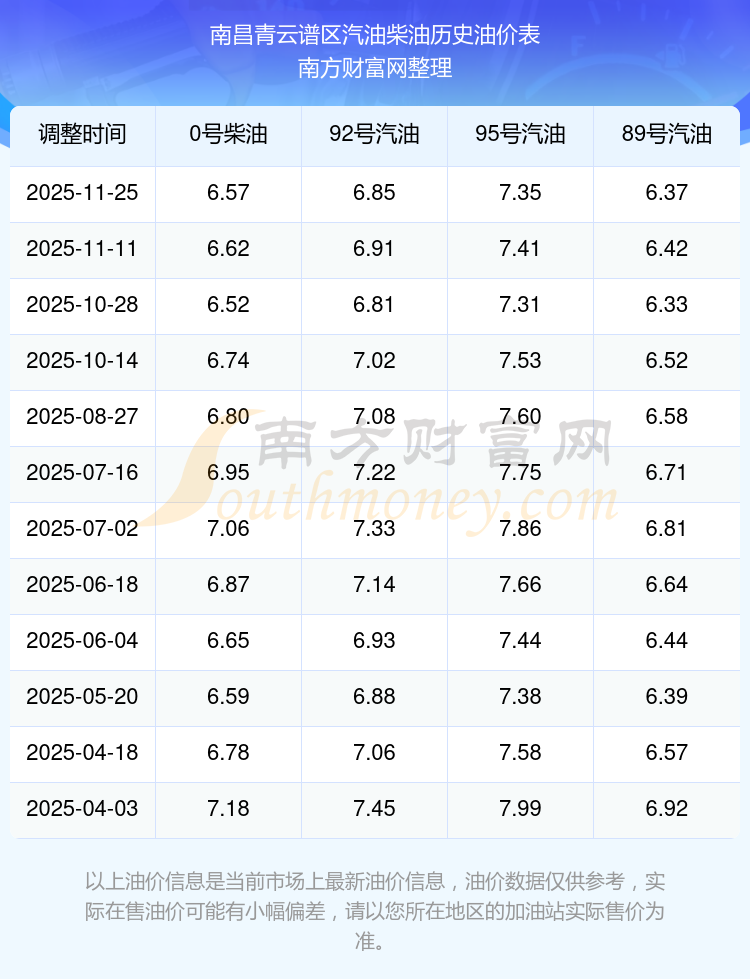 以上油價信息是當(dāng)前市場上最新油價信息,油價數(shù)據(jù)僅供參考,實(shí)際在售油價可能有小幅偏差,請以您所在地區(qū)的加油站實(shí)際售價為準(zhǔn)。