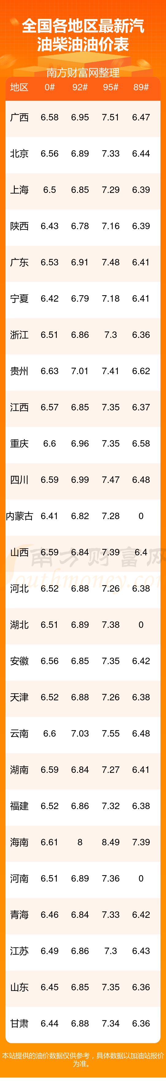 2025年11月30日全國油價(jià)調(diào)整及最新汽油價(jià)格表