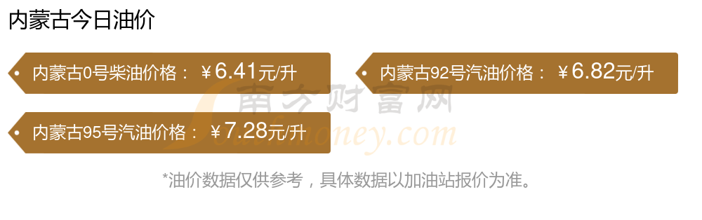 以上數(shù)據(jù)僅供參考,請(qǐng)以您所在地區(qū)的加油站實(shí)際售價(jià)為準(zhǔn)。南方財(cái)富網(wǎng)發(fā)布此信息的目的在于傳播更多信息,對(duì)使用該油價(jià)信息所導(dǎo)致的結(jié)果概不承擔(dān)責(zé)任。