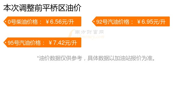 油價(jià)數(shù)據(jù)僅供參考,請(qǐng)以您所在地區(qū)的加油站報(bào)價(jià)為準(zhǔn)。南方財(cái)富網(wǎng)發(fā)布此信息的目的在于傳播更多信息,對(duì)使用該油價(jià)信息所導(dǎo)致的結(jié)果概不承擔(dān)任何責(zé)任。