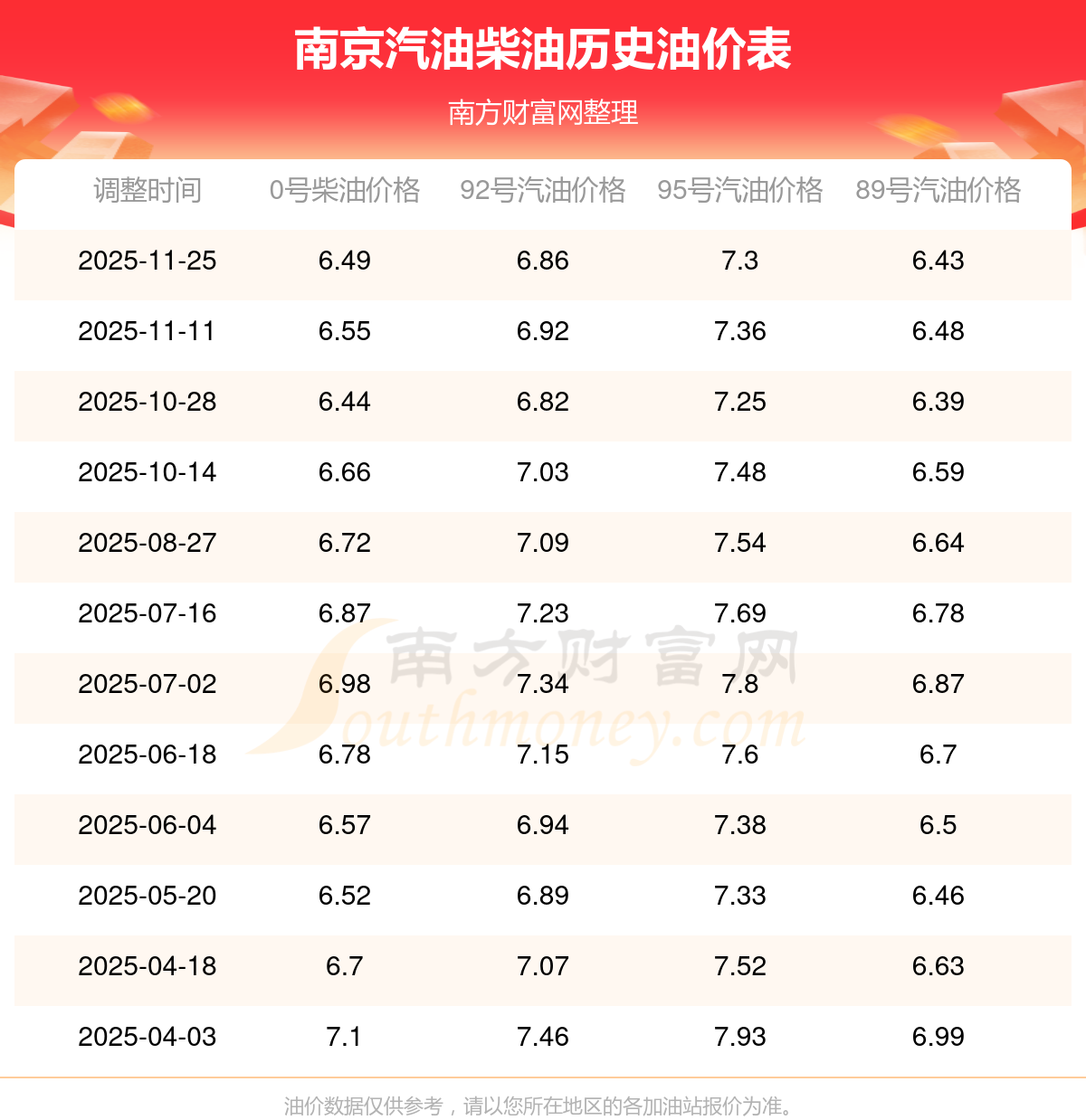 南京最近一次油價(jià)調(diào)整最新價(jià)格表