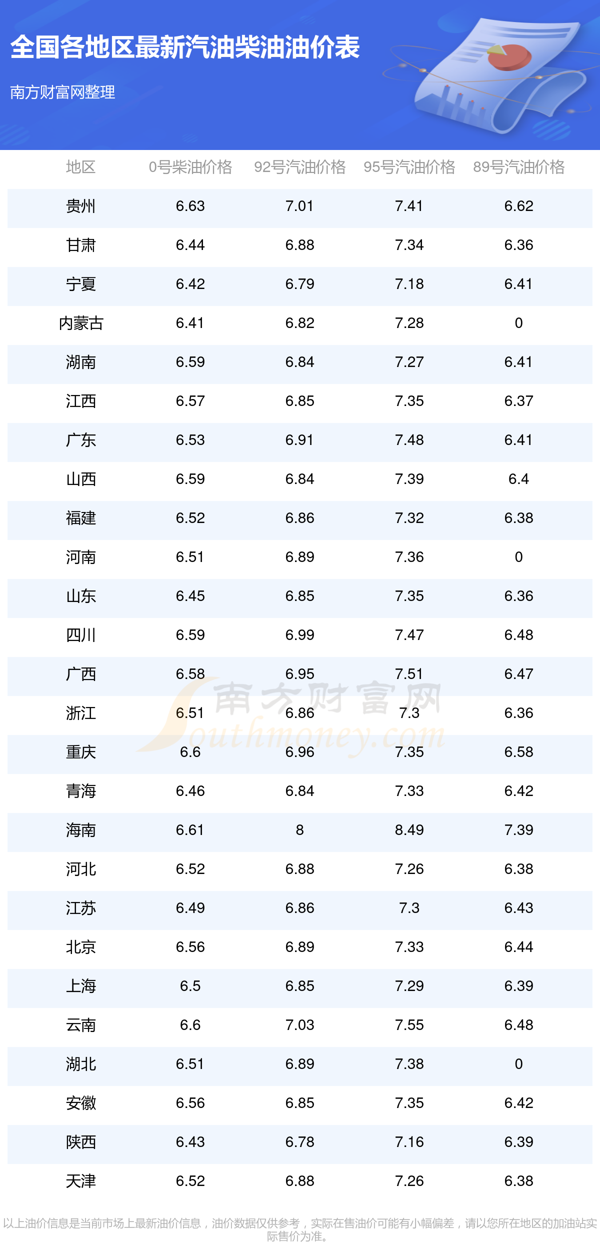 油價數(shù)據(jù)僅供參考,請以您所在地區(qū)的各加油站報價為準(zhǔn)。