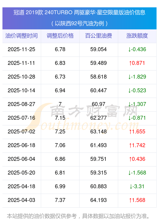根據(jù)11月25日92號汽油最新調(diào)整價格6.78元/升來計算(以陜西為例),該車型每百公里的平均油費是59.054元,上一輪11月11日調(diào)整價格6.83元每升來計算,每百公里的平均油費是59.489元,對比上一輪少花0.436元,下一輪的油價調(diào)整時間是12月8日24時。