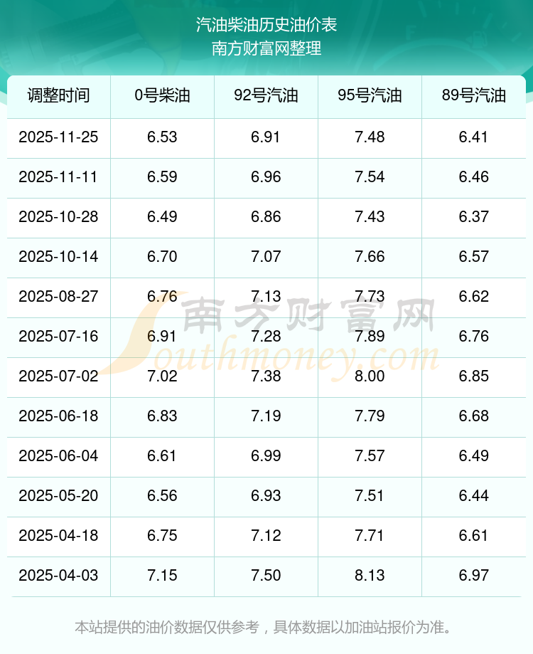 佛山汽油、柴油11月30日的價格是多少錢一升?詳情為:92號汽油為6.91元,下降了0.05元;95號汽油為7.48元,下降了0.06元;89號汽油為6.41元,下降了0.05元;0號柴油為6.53元,下降了0.06元,本次油價的調(diào)整時間為11月25日。下一輪油價調(diào)整時間12月8日24時,距離現(xiàn)在還有8.31天。