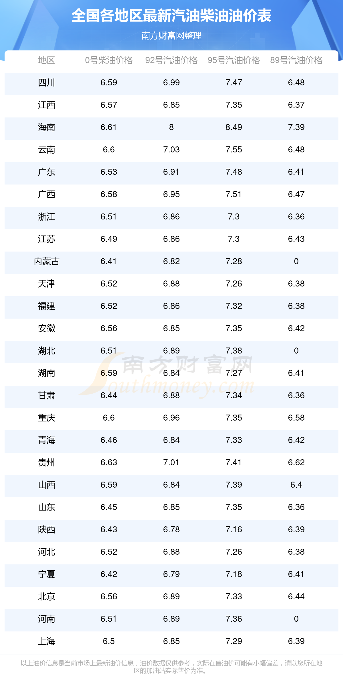 油價調整最新消息:合肥廬江縣汽油、柴油11月30日每升最新價格為:92號汽油為6.85元;95號汽油為7.35元;89號汽油為6.42元;0號柴油為6.56元,調整時間為11月25日。下一輪油價調整時間12月8日24時。